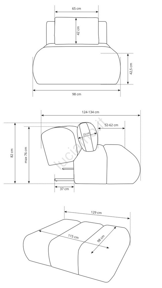 • La profondità della seduta 52-62 cm offre spazio sufficiente per una seduta rilassata ed ergonomica.