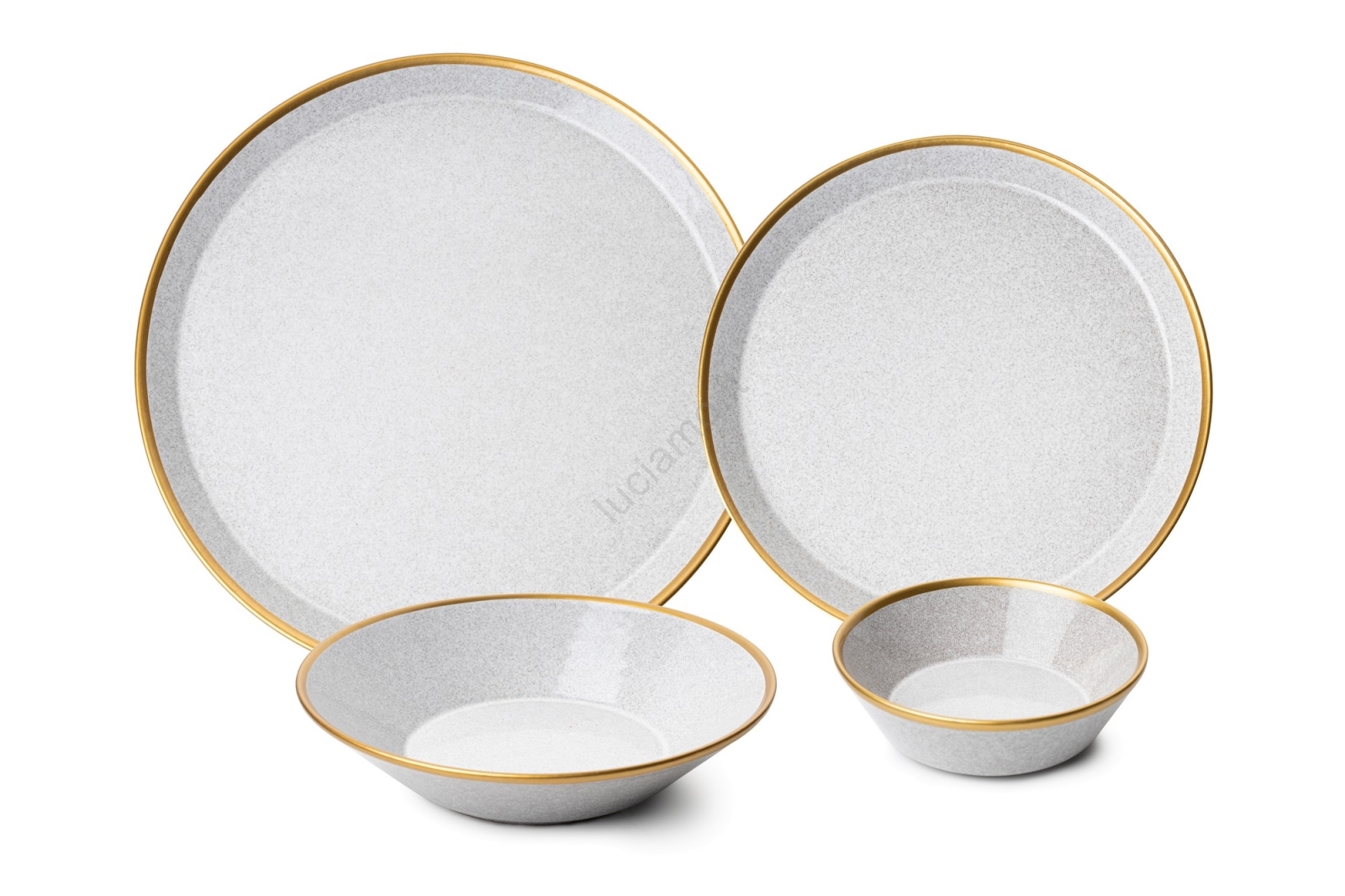 Servizio da tavola 16 pezzi, grigio/dorato, in porcellana