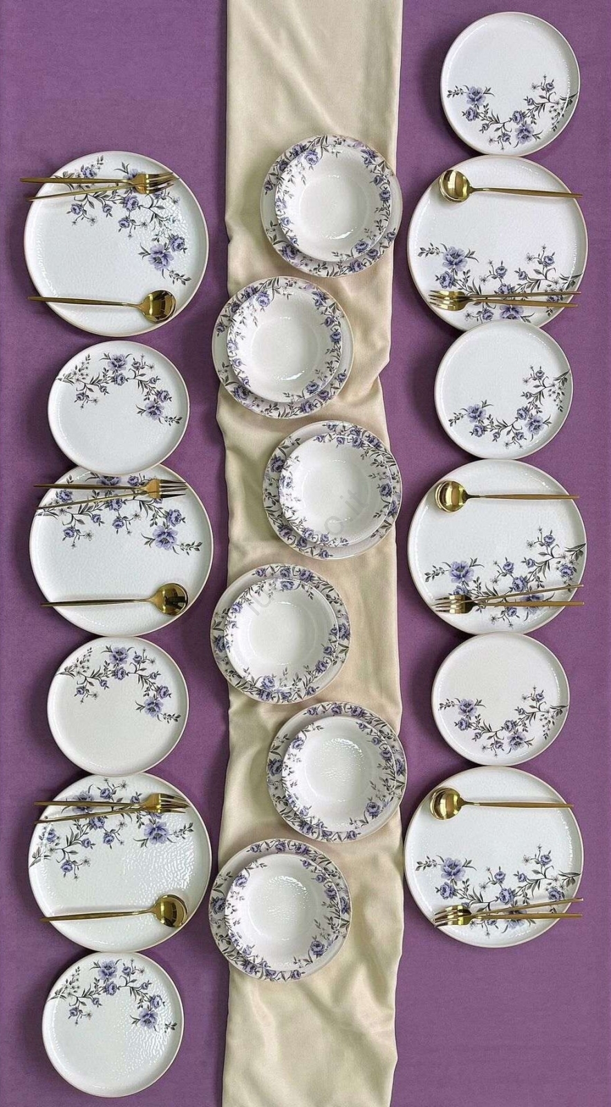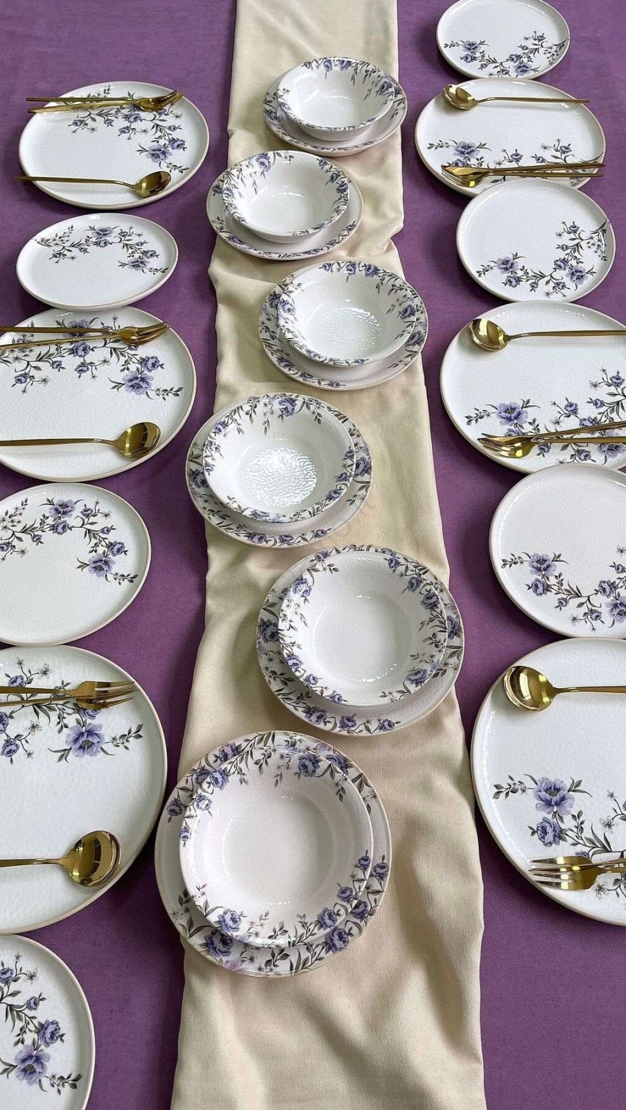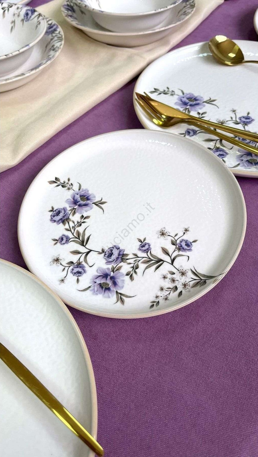 Servizio da tavola 24 pezzi, bianco/viola, in ceramica