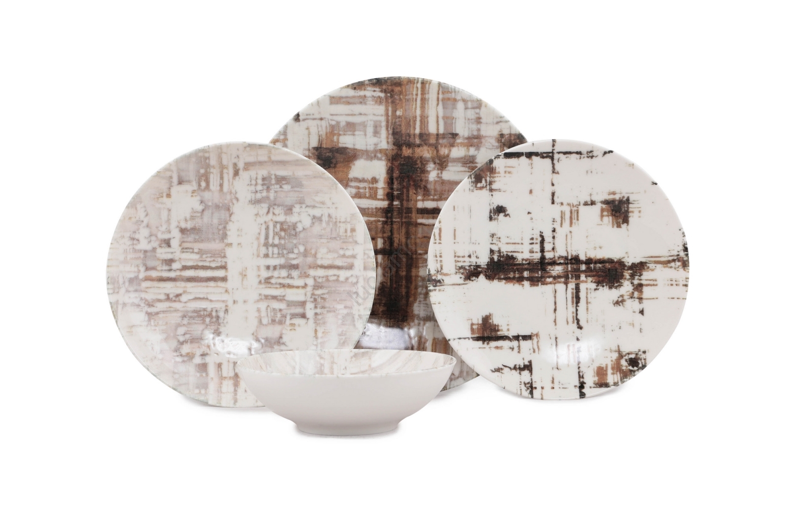 Servizio da tavola 24 pezzi marrone/bianco/porcellana