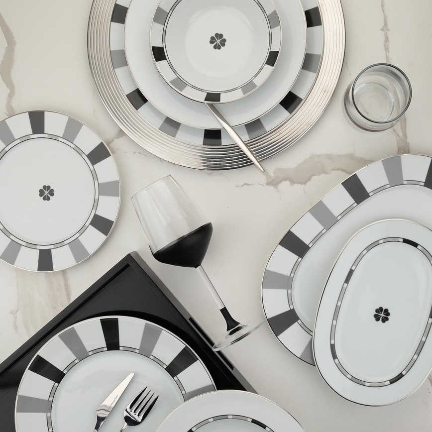 Servizio da tavola 27 pezzi bianco/grigio/porcellana