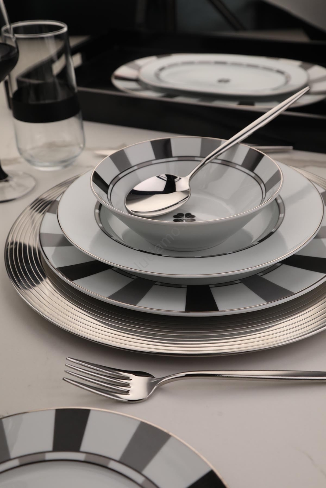 • Elegante set di stoviglie, perfetto per l'uso quotidiano e per le occasioni speciali.