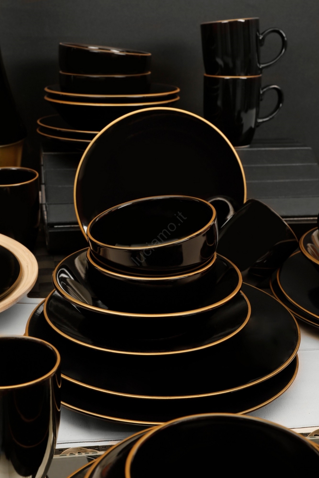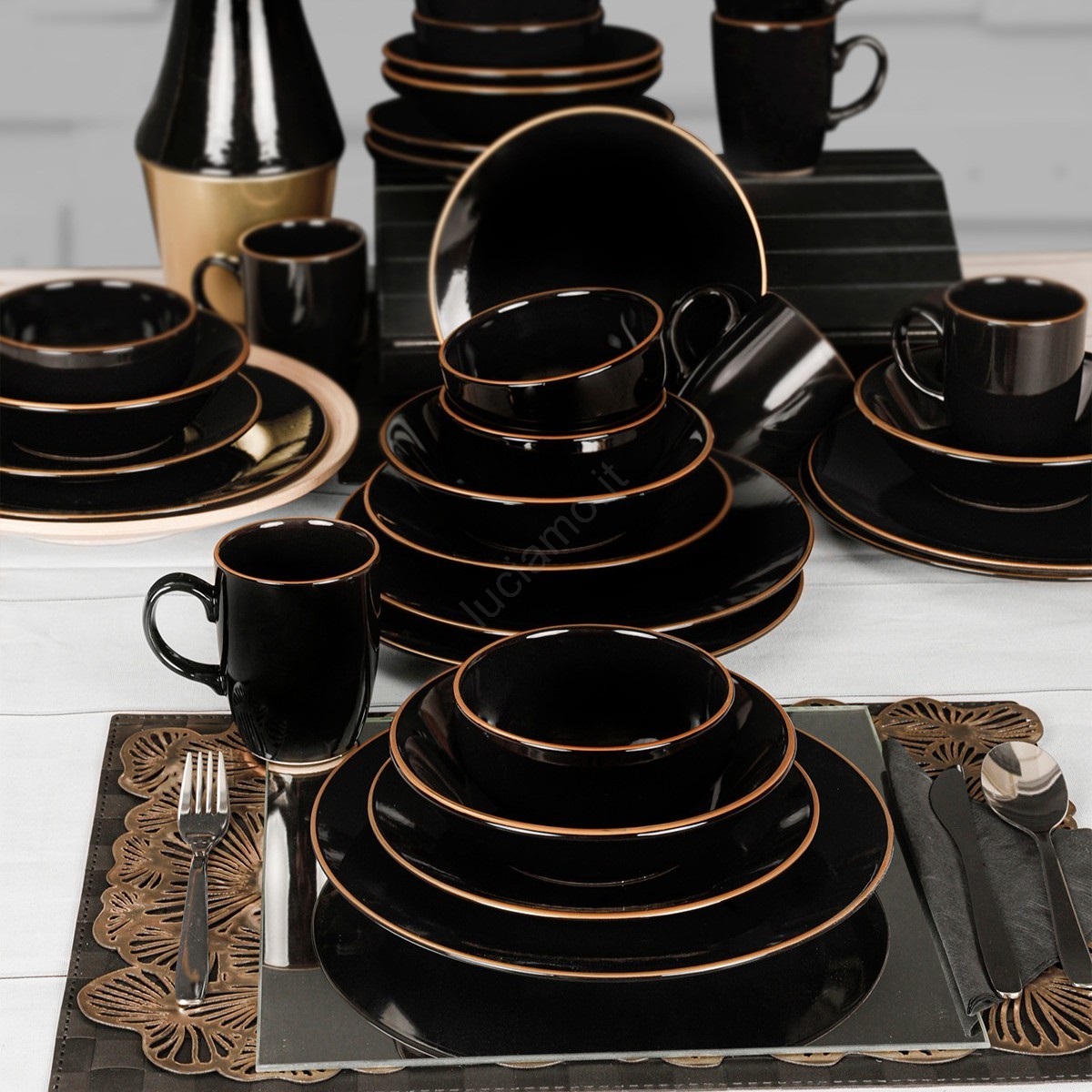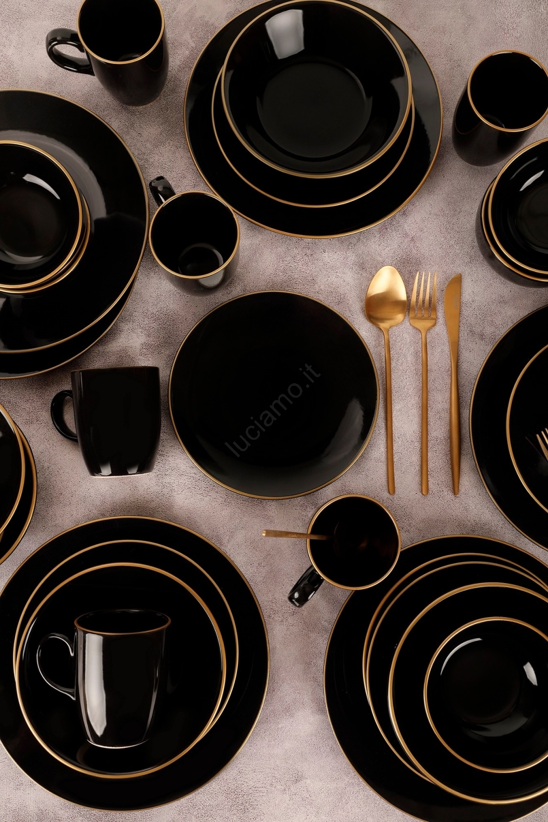 Servizio da tavola 30 pezzi nero/oro/gres
