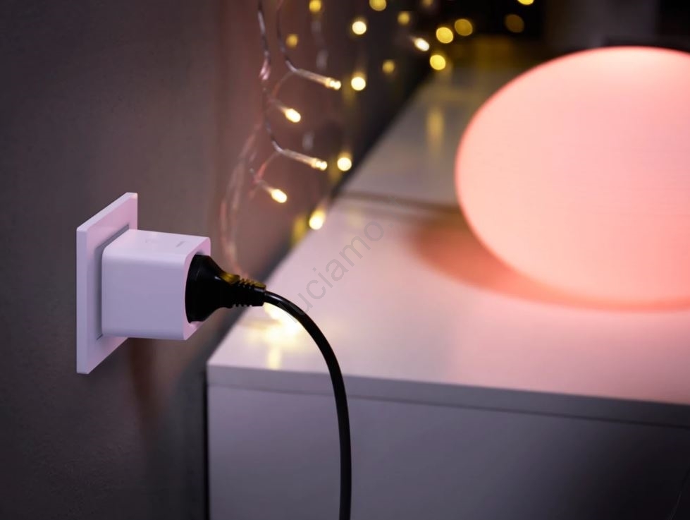 • Questa piccola e discreta presa consente di trasformare qualsiasi luce (anche quelle in cui non è possibile inserire una lampadina Hue) in una luce intelligente, controllabile tramite l'app Hue o con la voce.