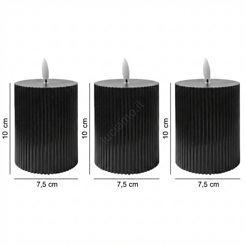 SET DA 3 candele LED BRILLO LED/2xAA 10 cm nere + telecomando