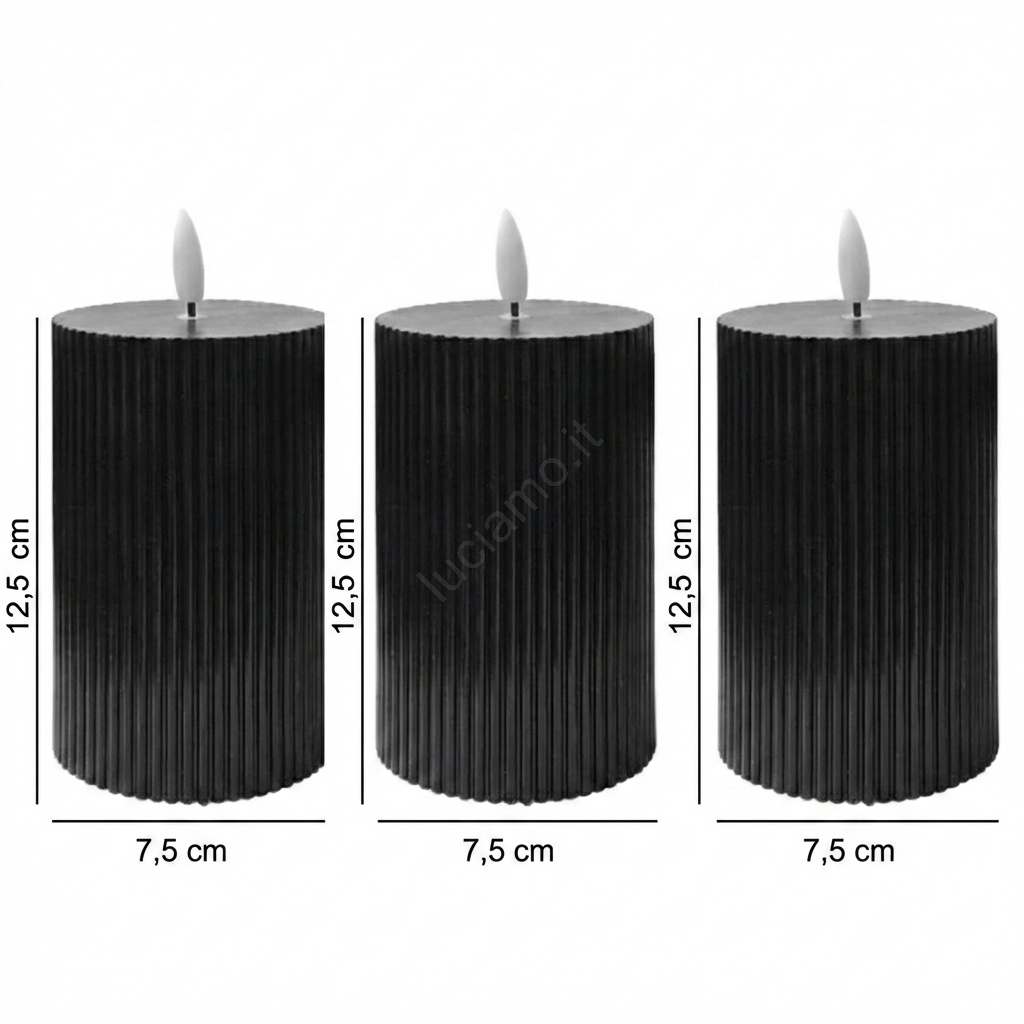 Set da 3 candele LED BRILLO, LED/2xAA, 12,5 cm, nero + telecomando