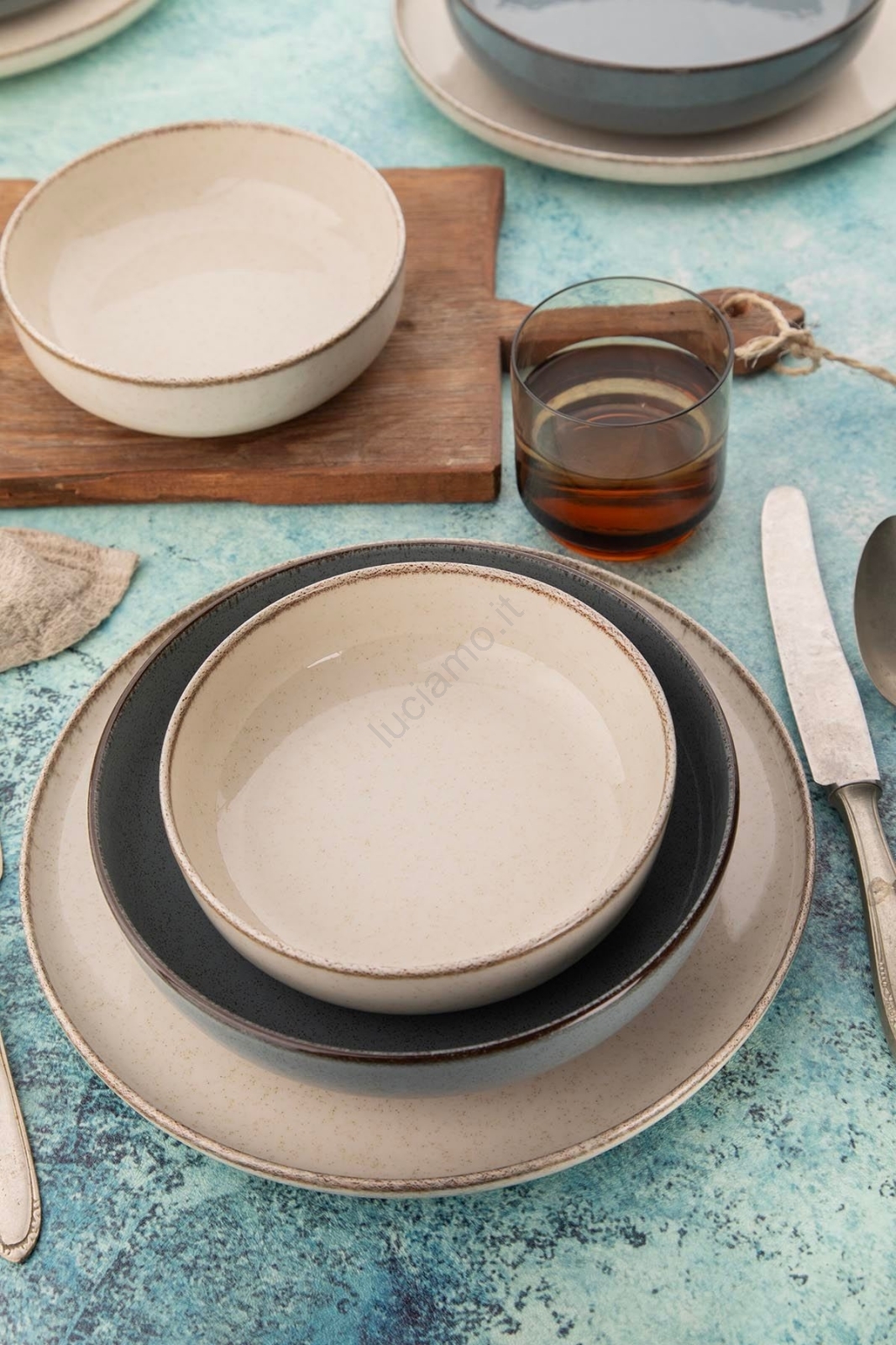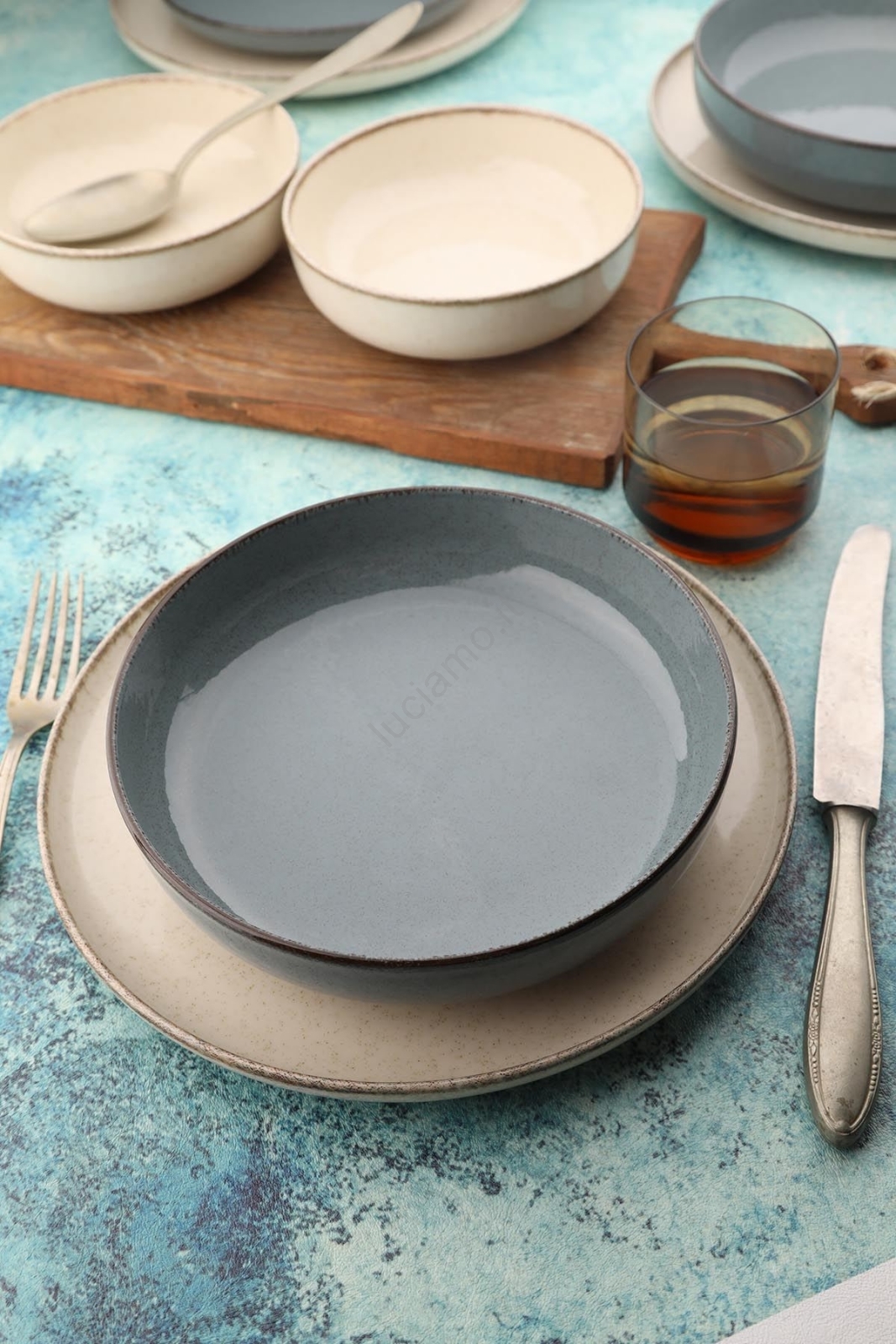 Set da tavola 16 pezzi beige/blu/porcellana
