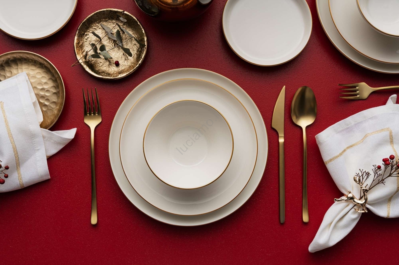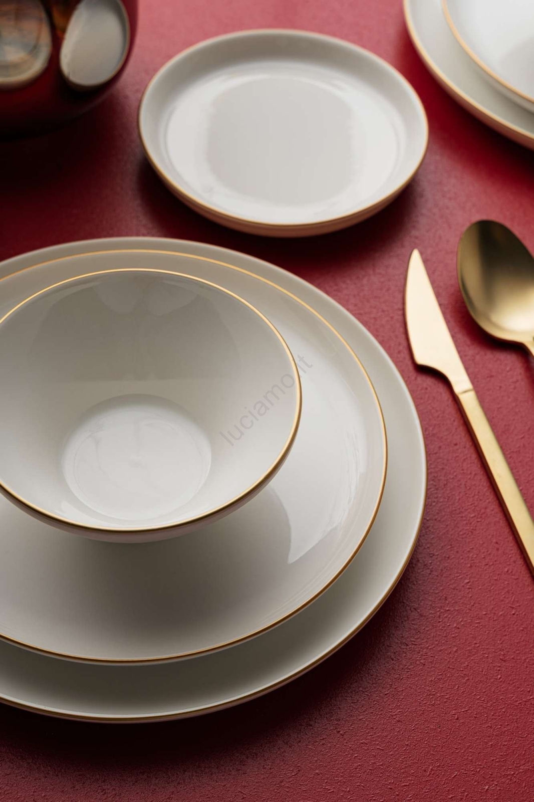 Set da tavola 16 pezzi beige/oro in porcellana