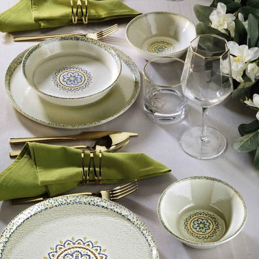 • Elegante set di stoviglie pensato per l'uso quotidiano e per occasioni speciali.