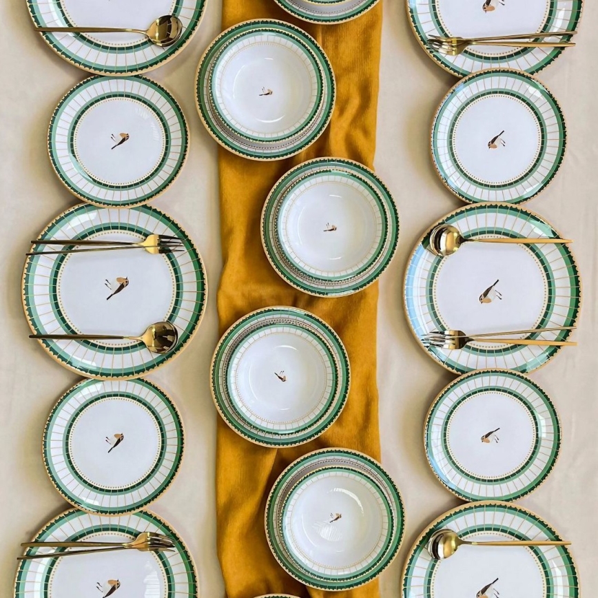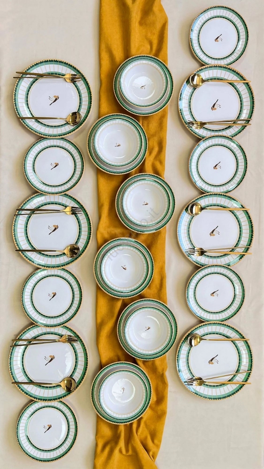 Set da tavola 24 pezzi bianco/verde/oro in ceramica