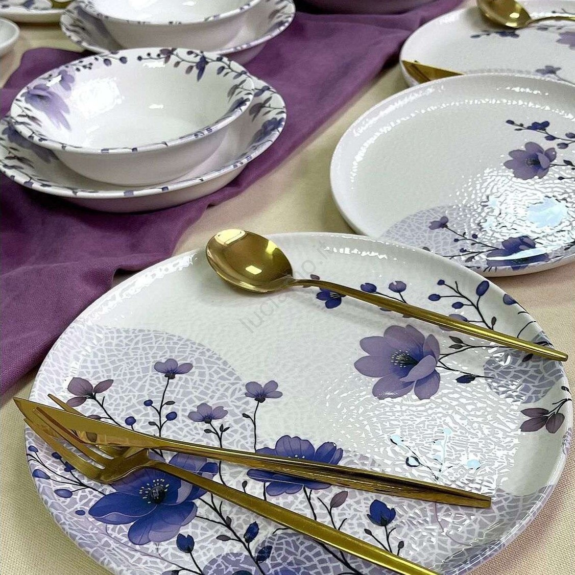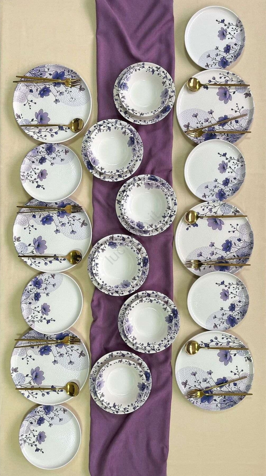 Set da tavola 24 pezzi bianco/viola/ceramica