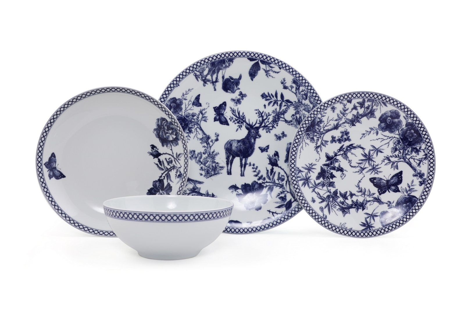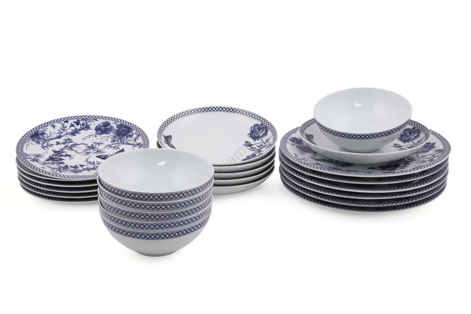 Set da tavola 24 pezzi in porcellana, bianco/blu