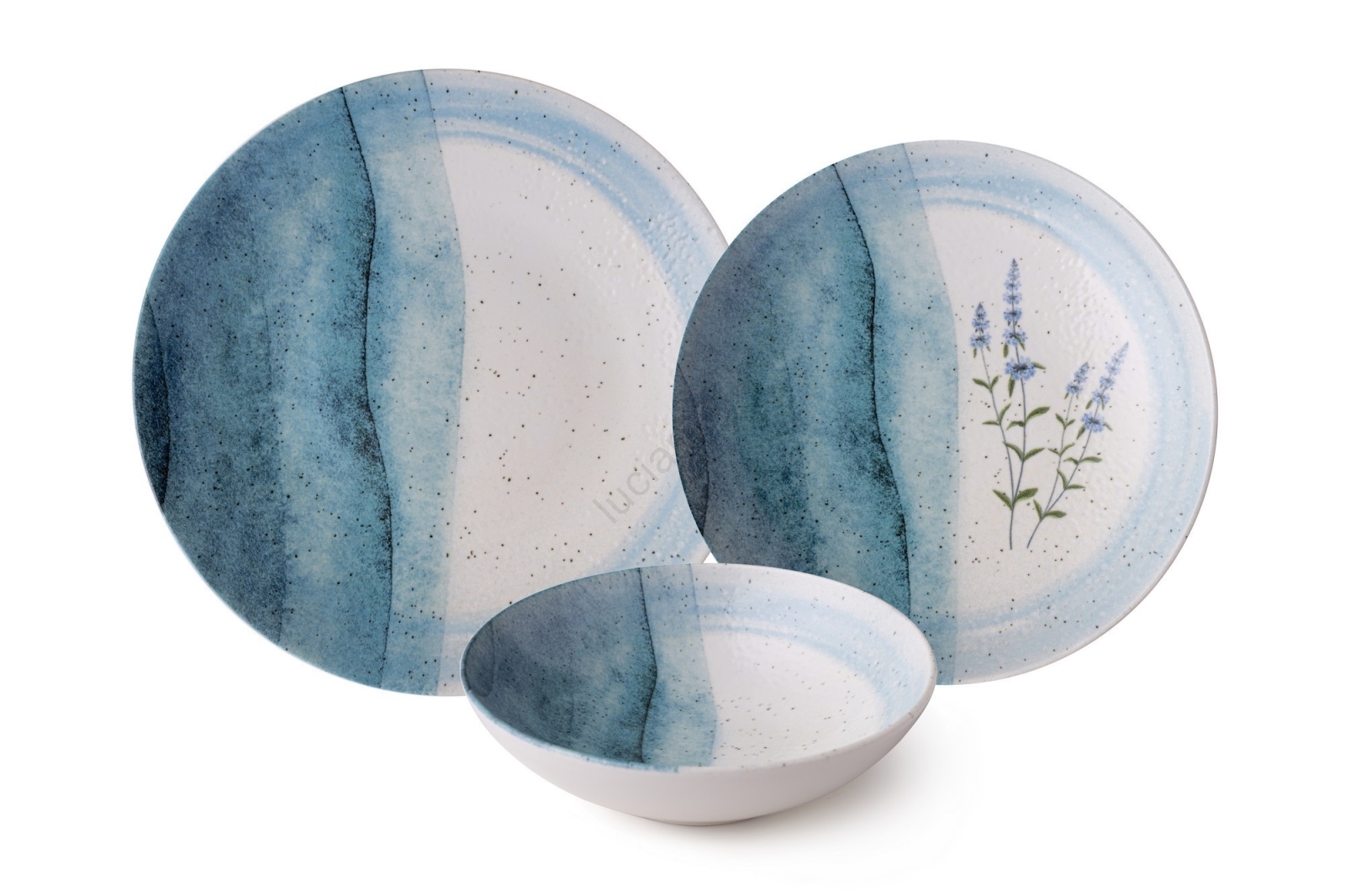 Set da tavola 24 pezzi in porcellana, blu/crema