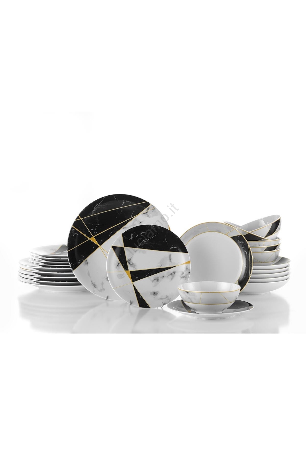 Set da tavola 24 pezzi, nero/bianco/oro, in porcellana