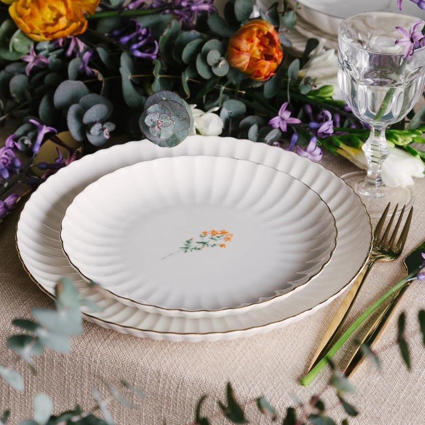 Set da tavola 27 pezzi, bianco/dorato, in porcellana