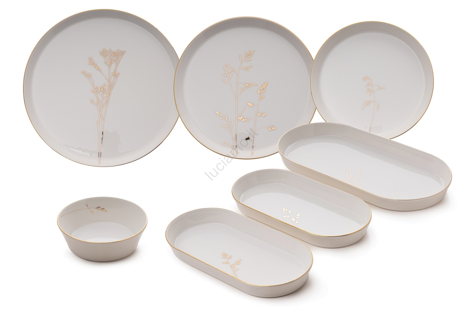 Set da tavola 27 pezzi in porcellana bianca con dettagli dorati
