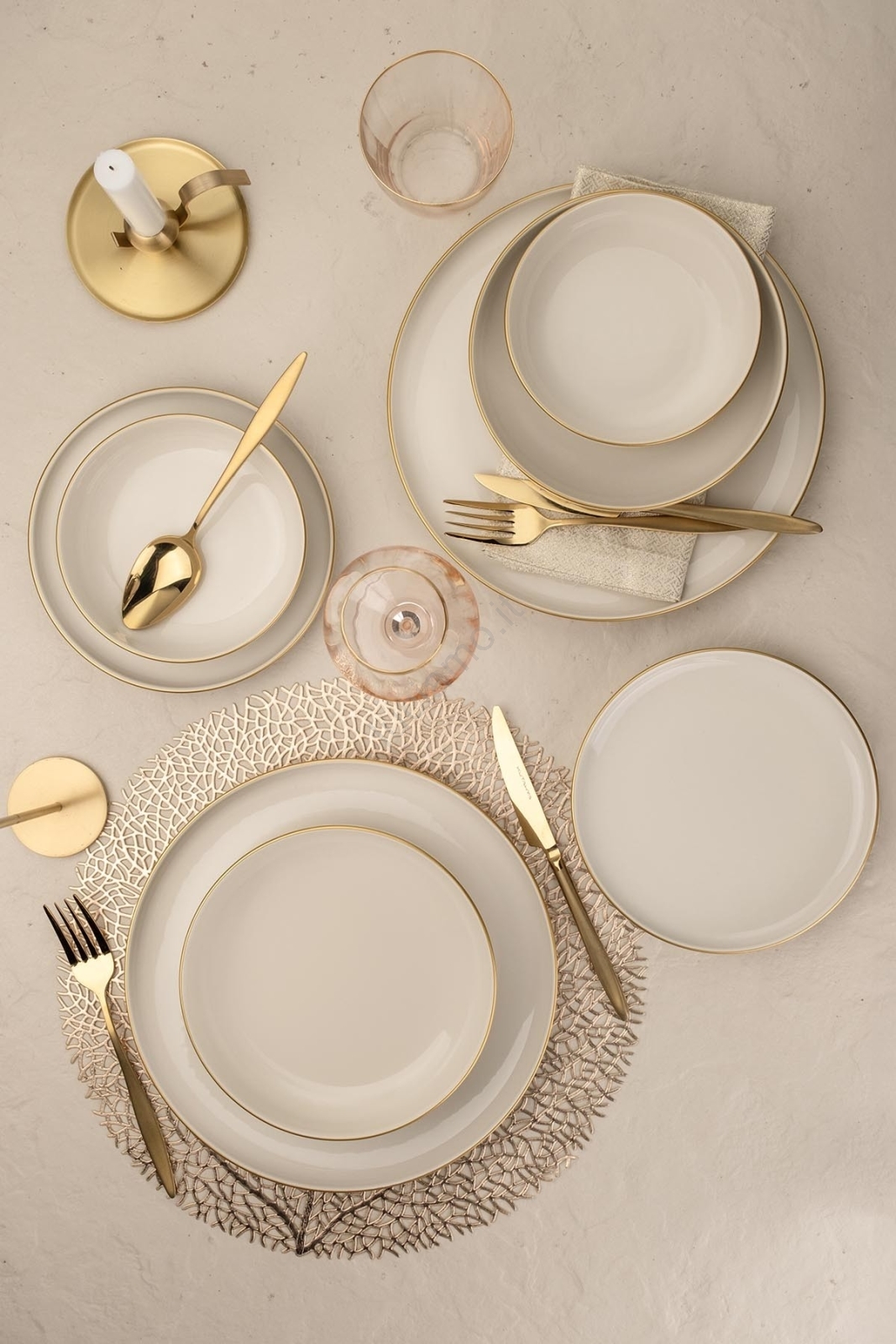 Set da tavola 8 pezzi in porcellana bianca con dettagli dorati
