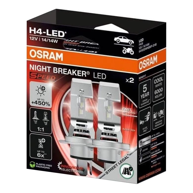 • Set di 2 lampadine LED per auto NIGHT BREAKER SPEED H4 P43T/14W/12V 6000K - Osram