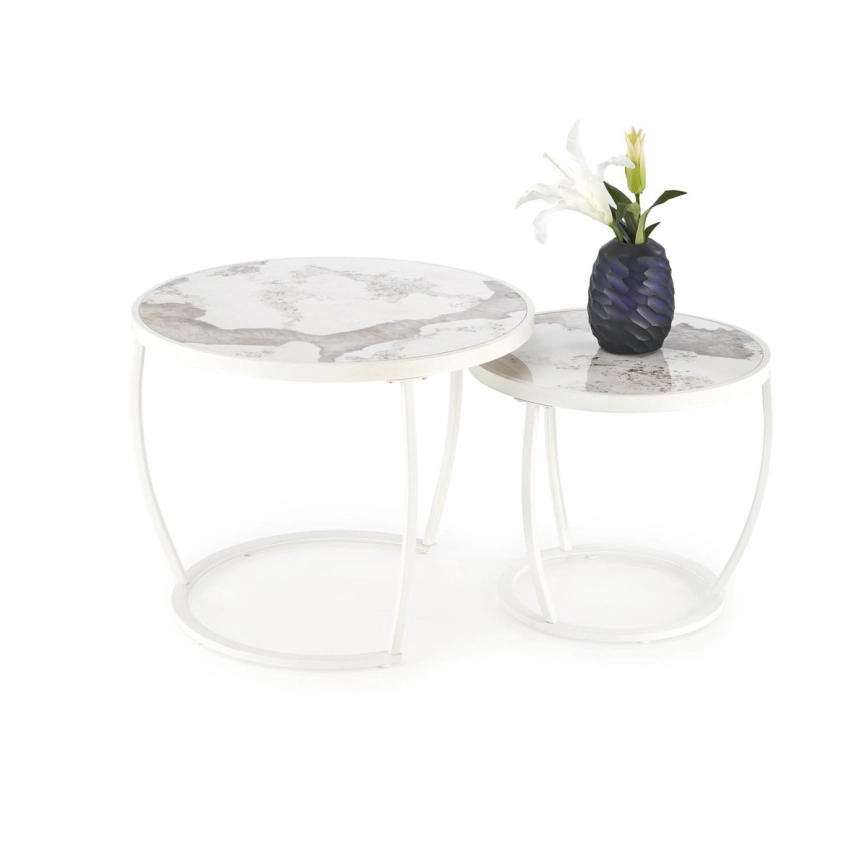 • Set di 2 tavolini da salotto AURORO beige/bianco