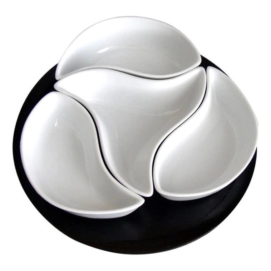 Set di 4 ciotole con vassoio TORO in ceramica e legno