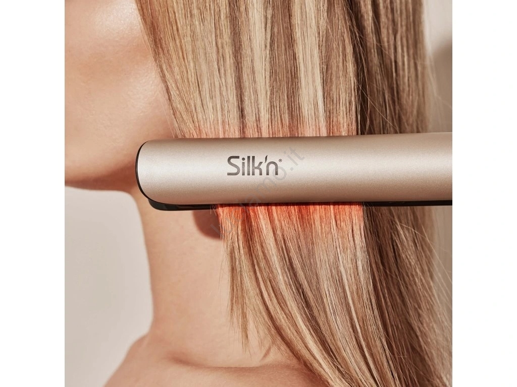 • Silk'n SilkyStraight è una piastra professionale per capelli che utilizza la tecnologia a infrarossi ed emette ioni negativi per lisciare e modellare i capelli con delicatezza, minimizzando i danni e l'effetto crespo.