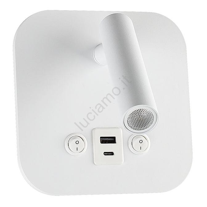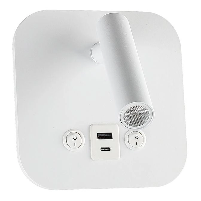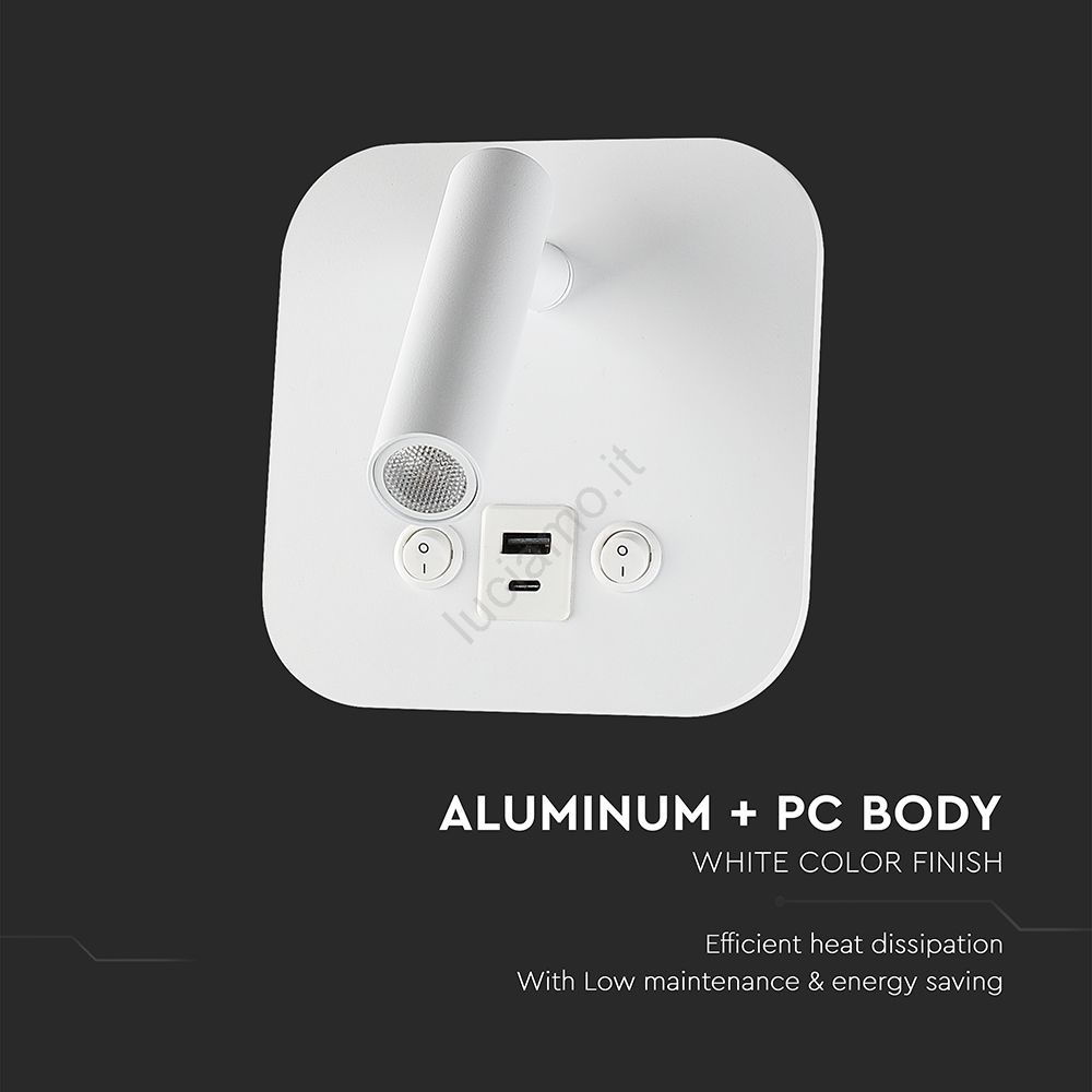 Spot da parete LED con porta USB, 8W, 230V, 3000K, bianco