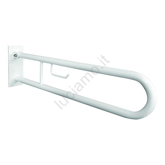 • Maniglione ribaltabile a U con portarotolo integrato.