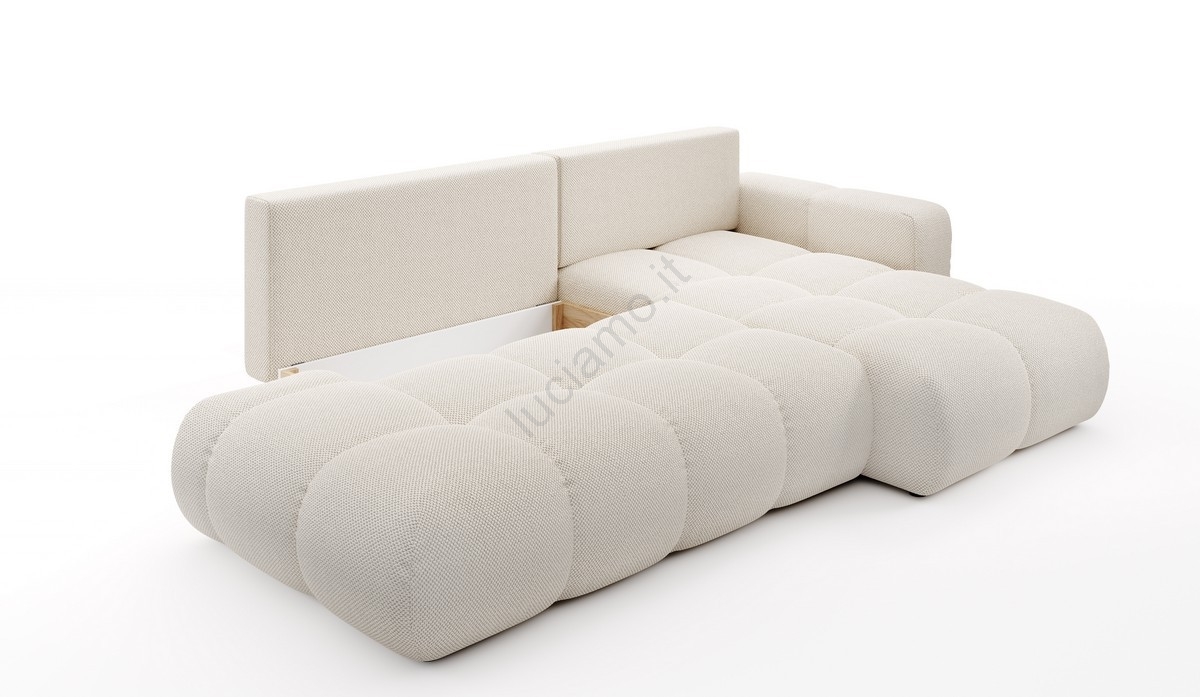 • Il divano dispone di un ampio vano contenitore per riporre biancheria da letto e altri oggetti stagionali.