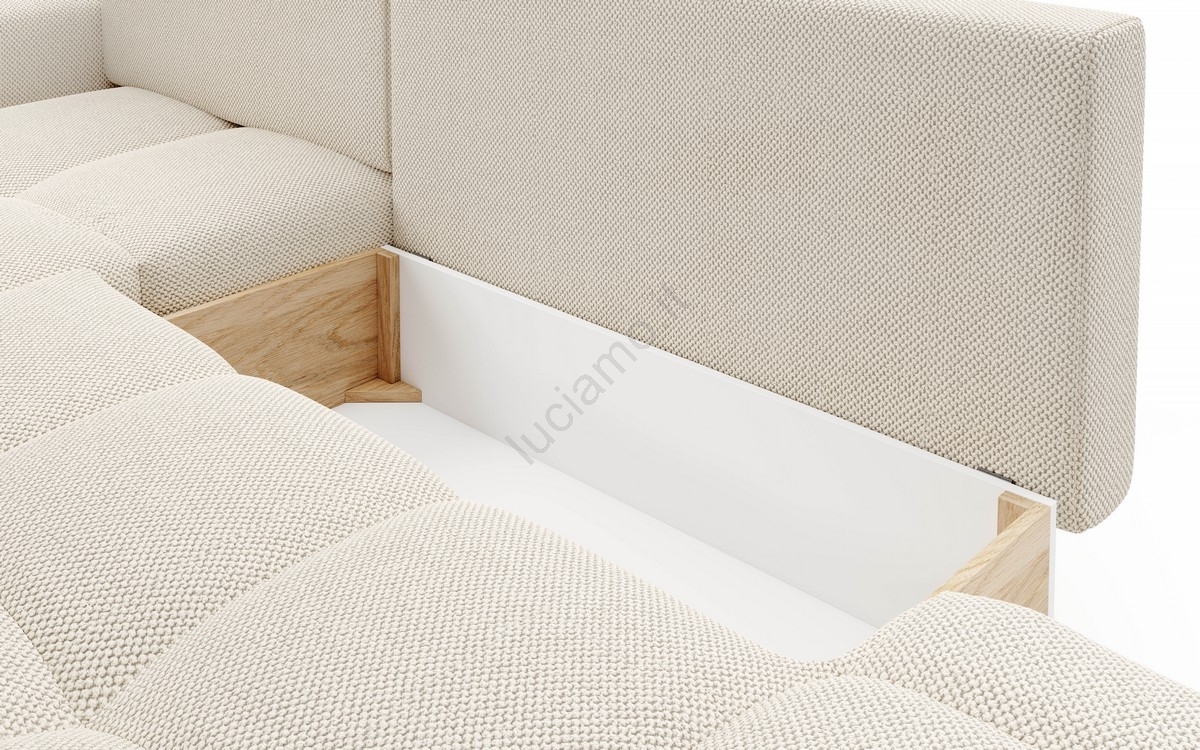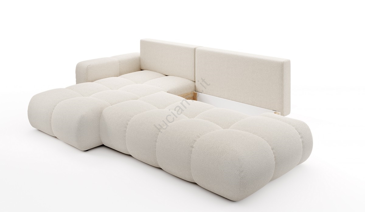 • Divano letto angolare imbottito ALMADA con contenitore a L, angolo destro, beige