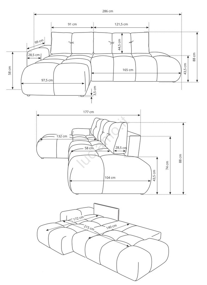 • Il divano dispone di un capiente vano contenitore per riporre biancheria da letto e altri articoli stagionali.