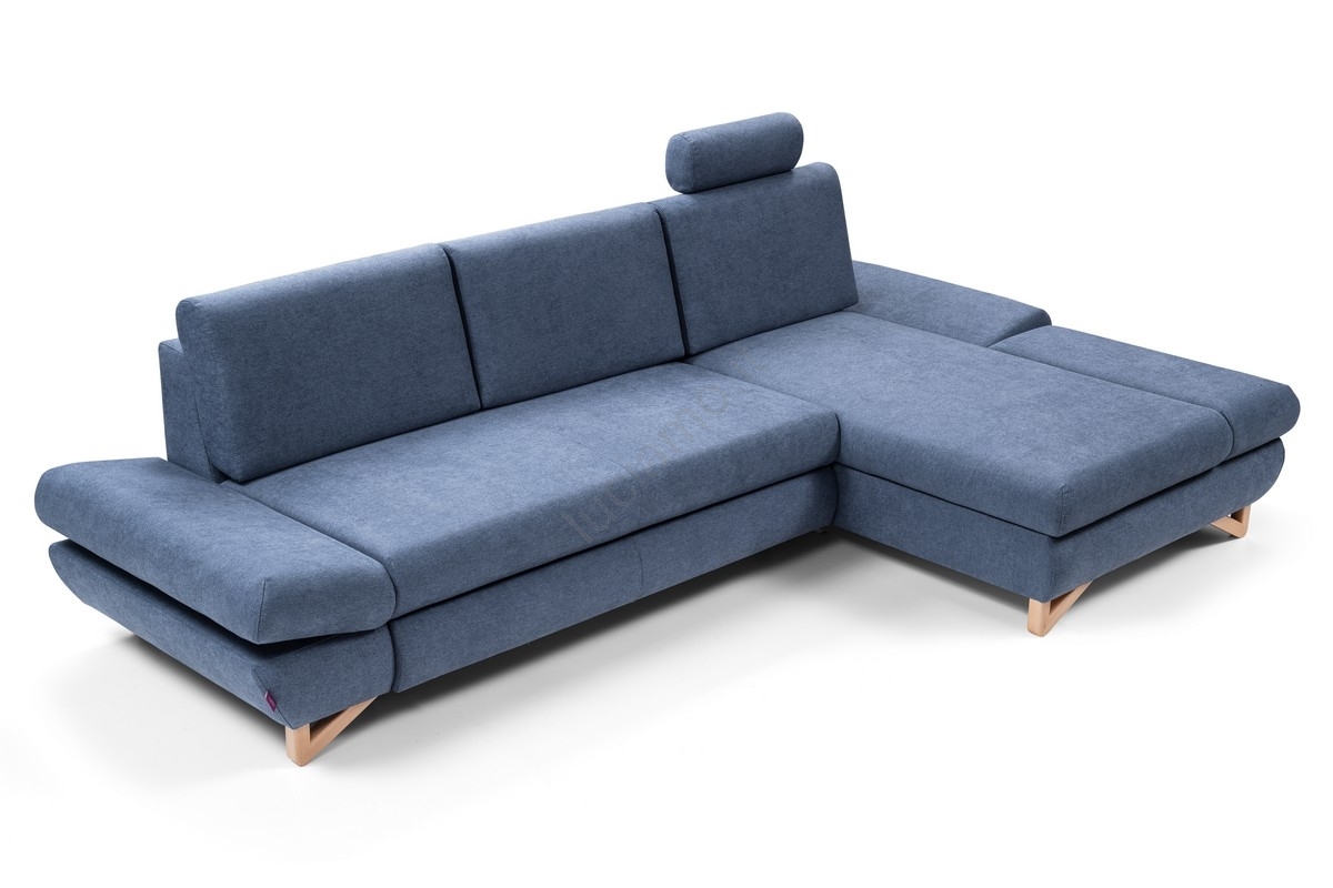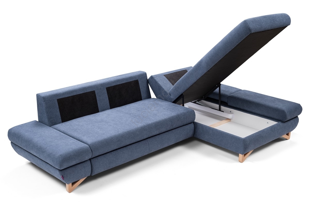 • Divano letto angolare imbottito AVESTA a forma di L con contenitore, angolo destro, blu