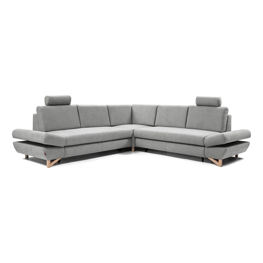 • Divano letto angolare imbottito AVESTA a L con vano contenitore, angolo destro, grigio