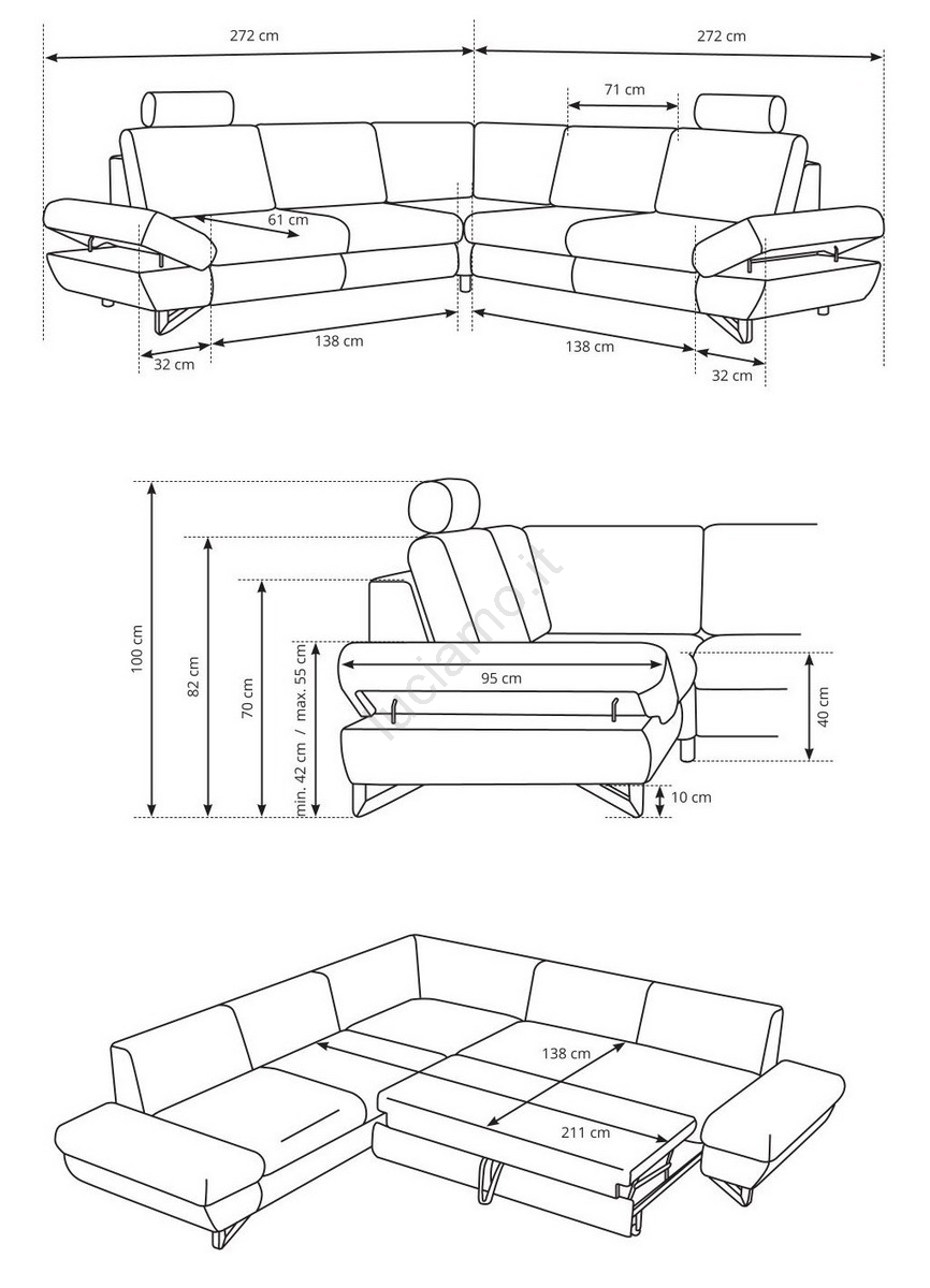 • Il divano dispone di un ampio vano contenitore per riporre biancheria da letto e altri articoli stagionali.