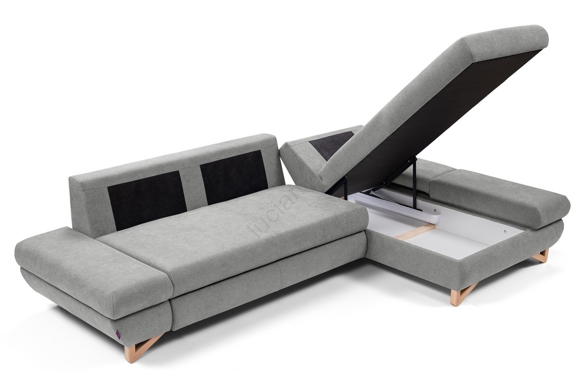 • Divano letto angolare imbottito con vano contenitore a L AVESTA lato sinistro, grigio