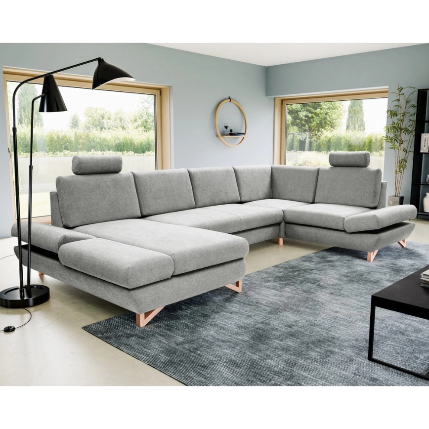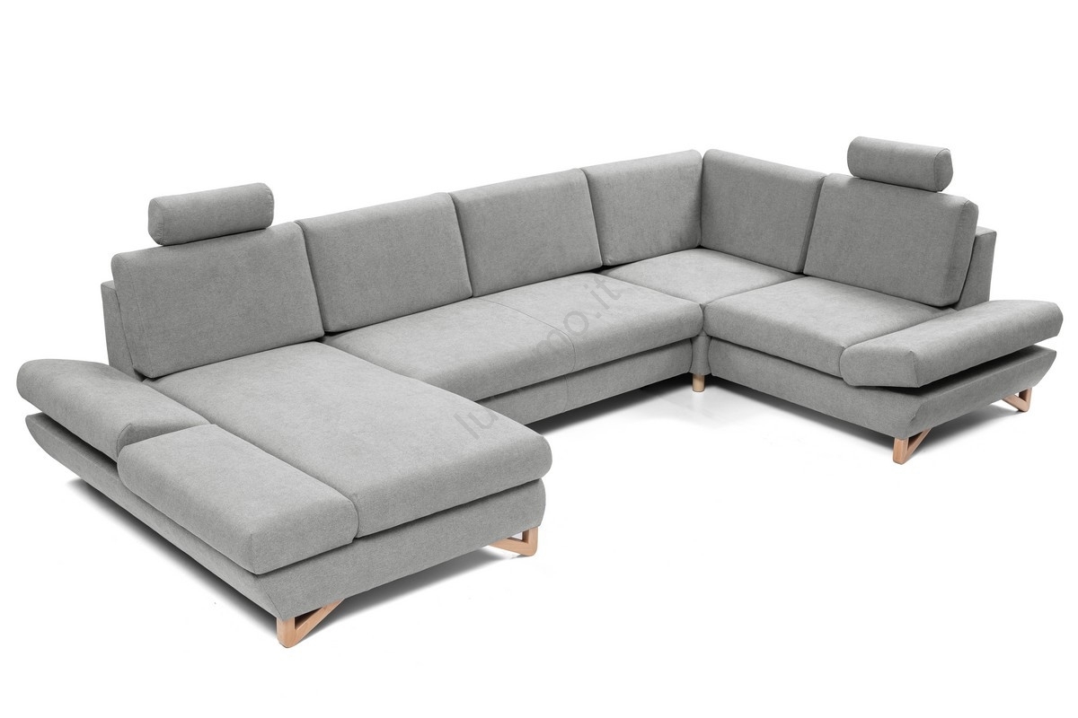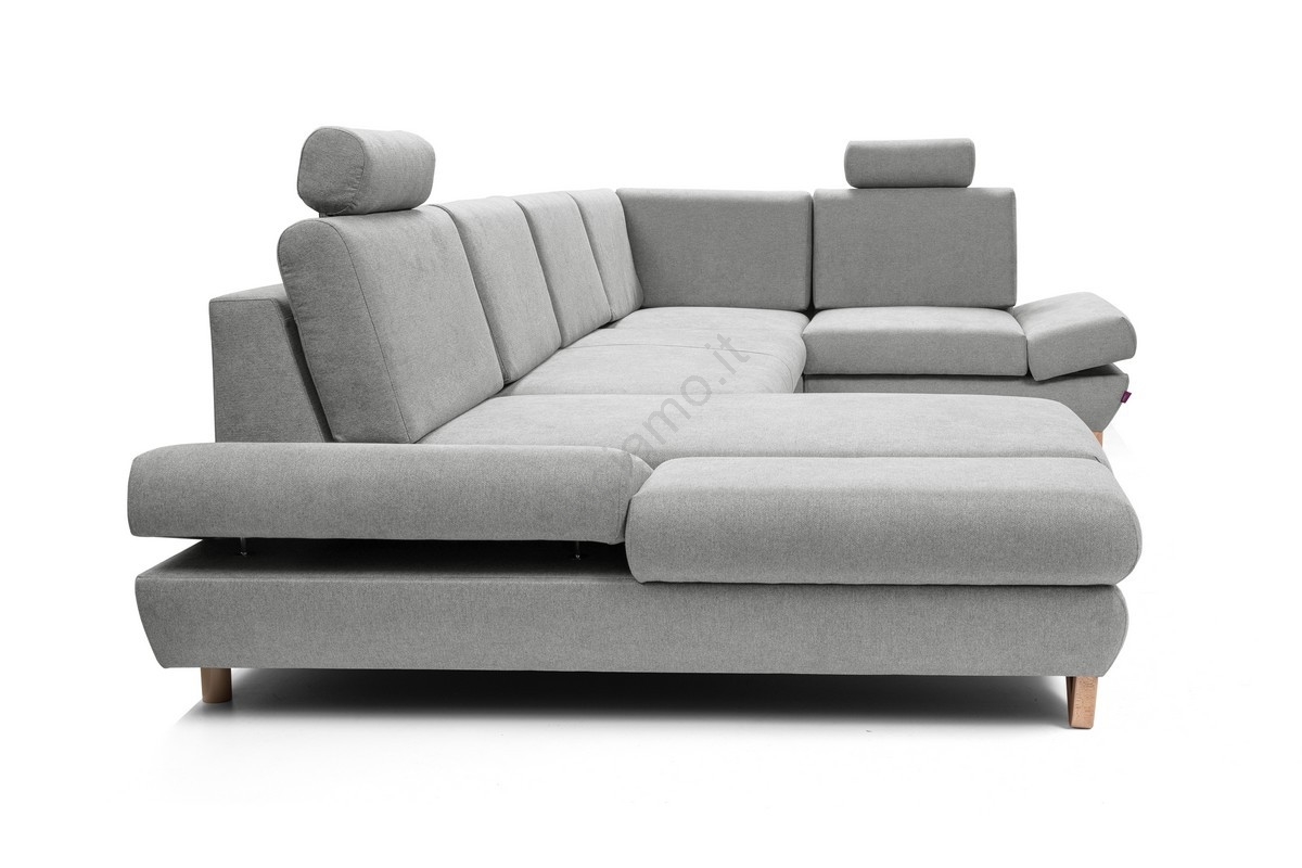 • Divano angolare letto imbottito a U con vano contenitore AVESTA grigio