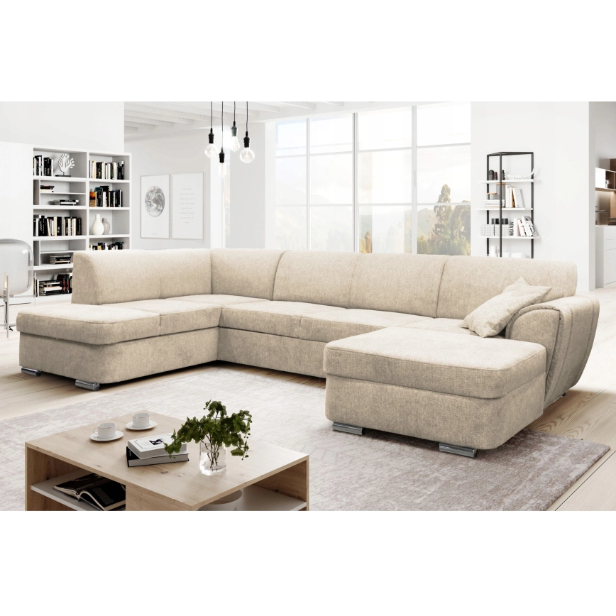 • Divano angolare convertibile in letto a U con vano contenitore SERPA, versione destra, beige