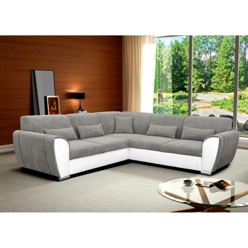 • Divano letto angolare VISEU con contenitore a L, penisola a destra, grigio/bianco