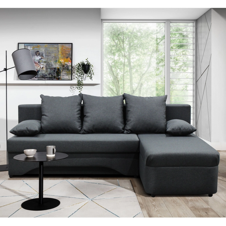 • Divano angolare letto universale con contenitore a L ALMEIDA antracite