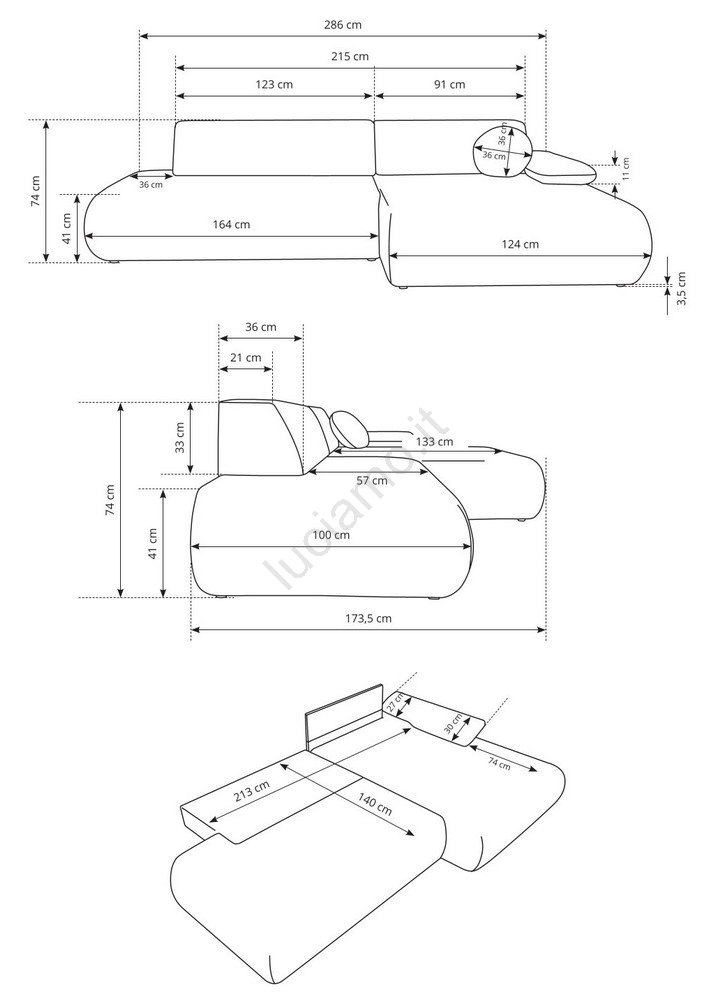 • Grazie alla funzione letto (tipo DL) si trasforma facilmente in un comodo spazio per dormire.