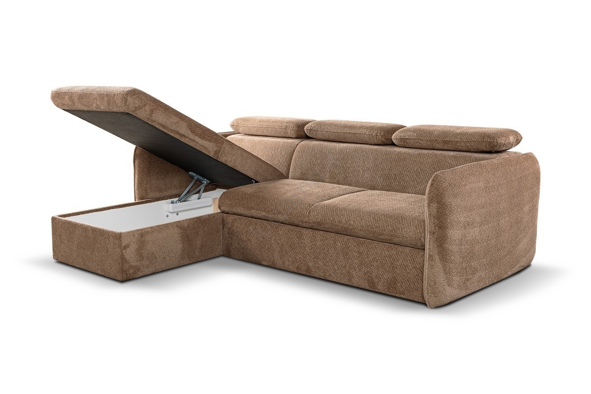 • Divano angolare a L con contenitore BEJA beige, lato sinistro, trasformabile