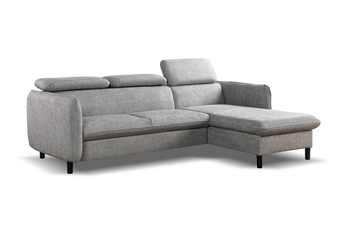 • Divano letto angolare a L con vano contenitore NISA, grigio, lato destro
