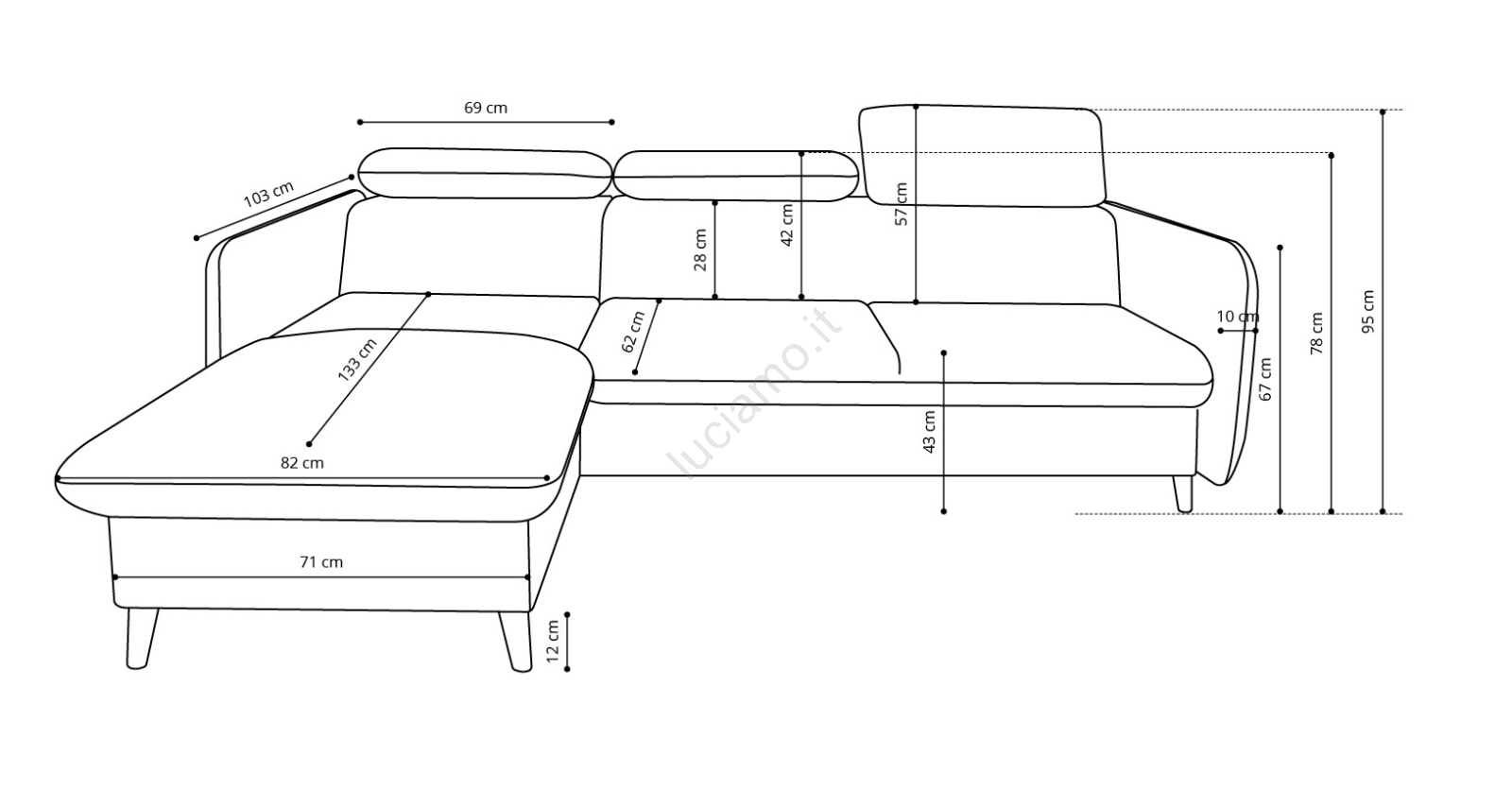 • Il retro del divano è rifinito con una tappezzeria di qualità, che consente di posizionarlo anche al centro della stanza.