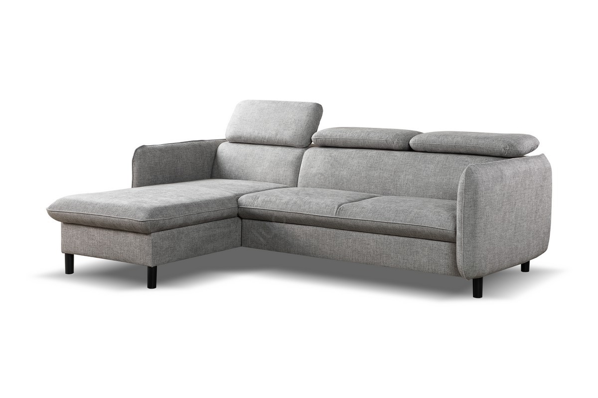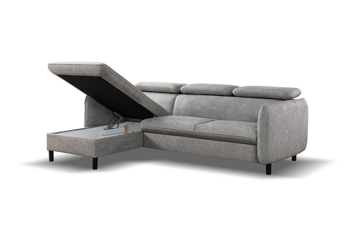 Divano letto angolare a L con contenitore NISA, grigio, lato sinistro