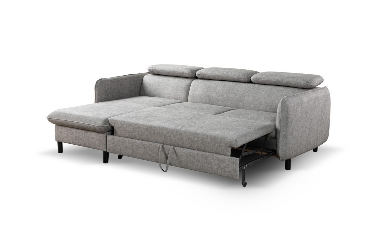 • Divano letto angolare a L con contenitore NISA, grigio, lato sinistro