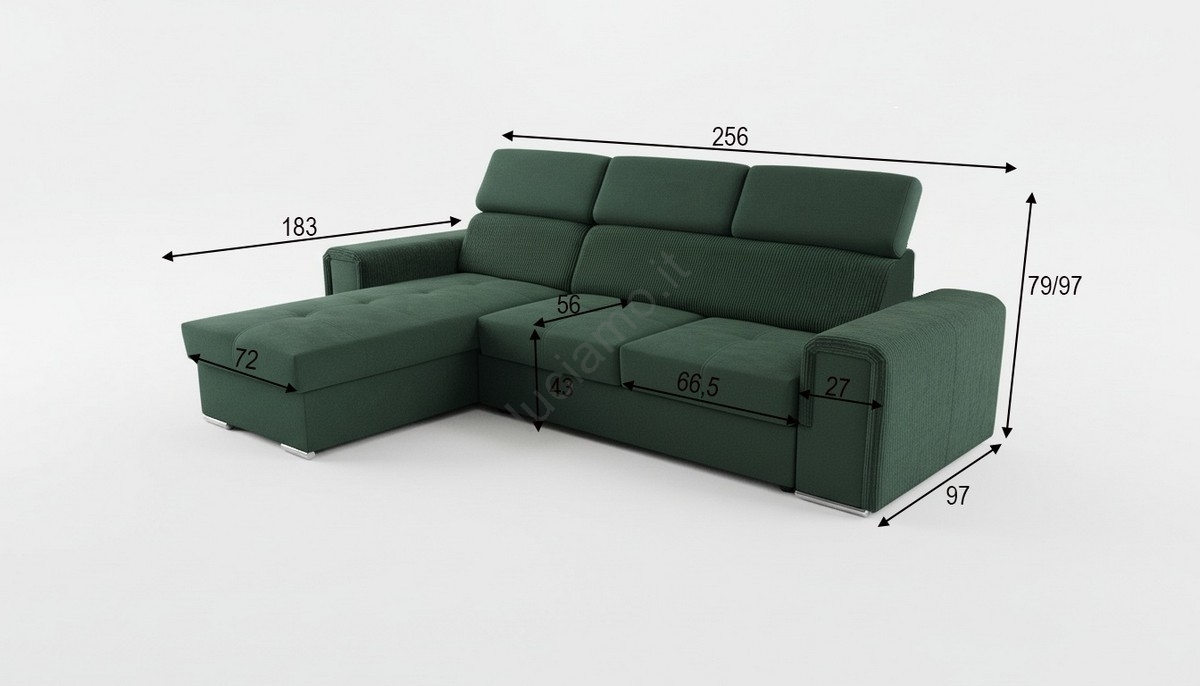 • Divano angolare trasformabile a L universale con contenitore SALVADA, verde