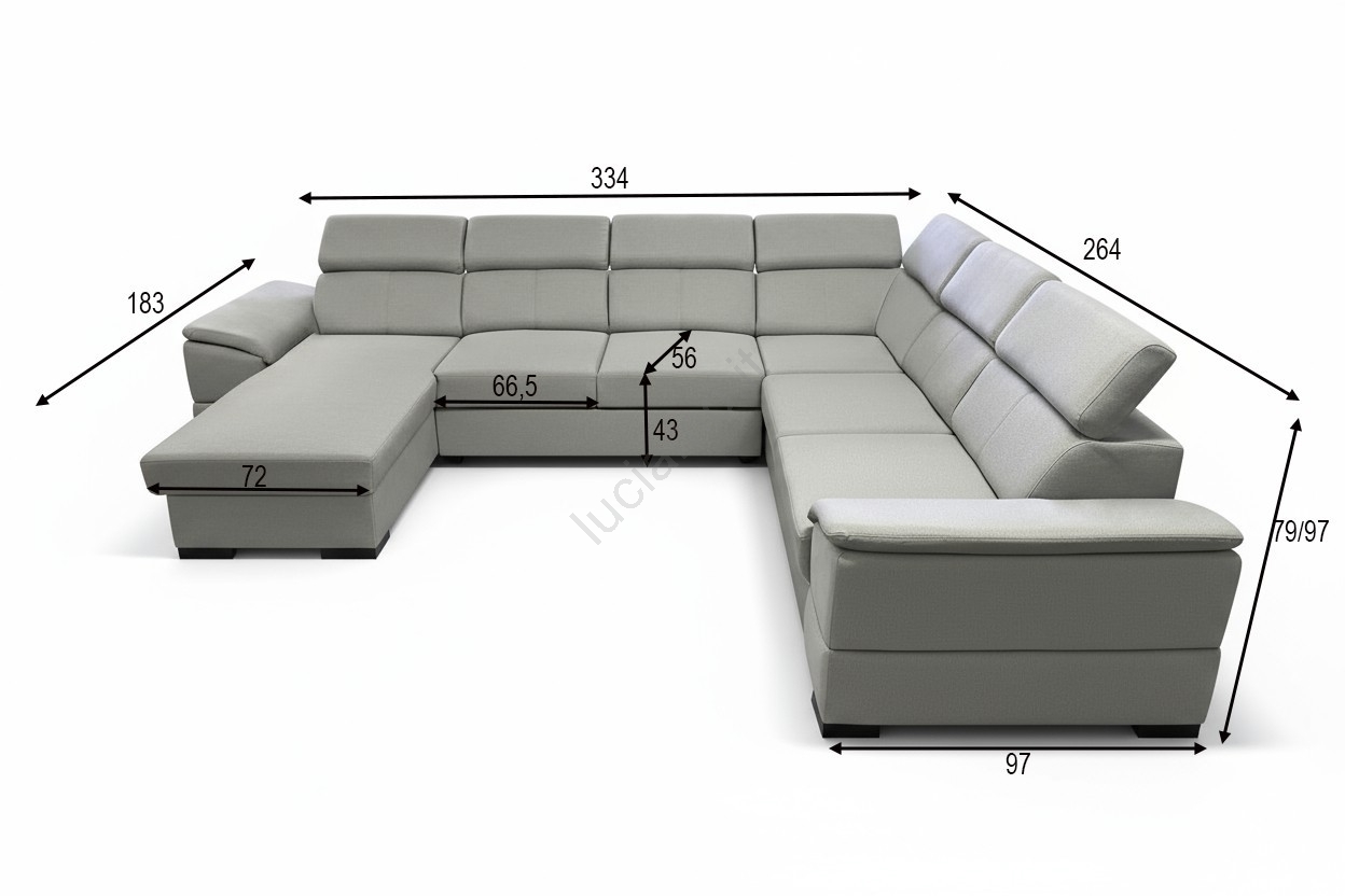 • Ampio divano angolare a forma di U offre sia comfort che un design elegante.