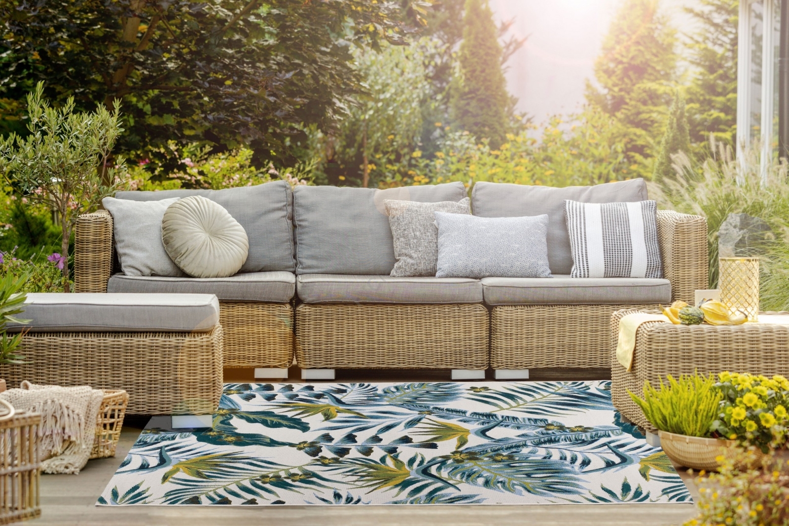 Tappeto da esterno CAPPUCCINO 120x180 cm turchese/motivo a foglie
