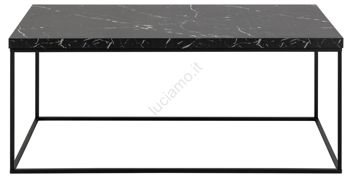 • Piano in marmo nero Marquina, melaminico grezzo, base in acciaio verniciato a polvere nero opaco.
