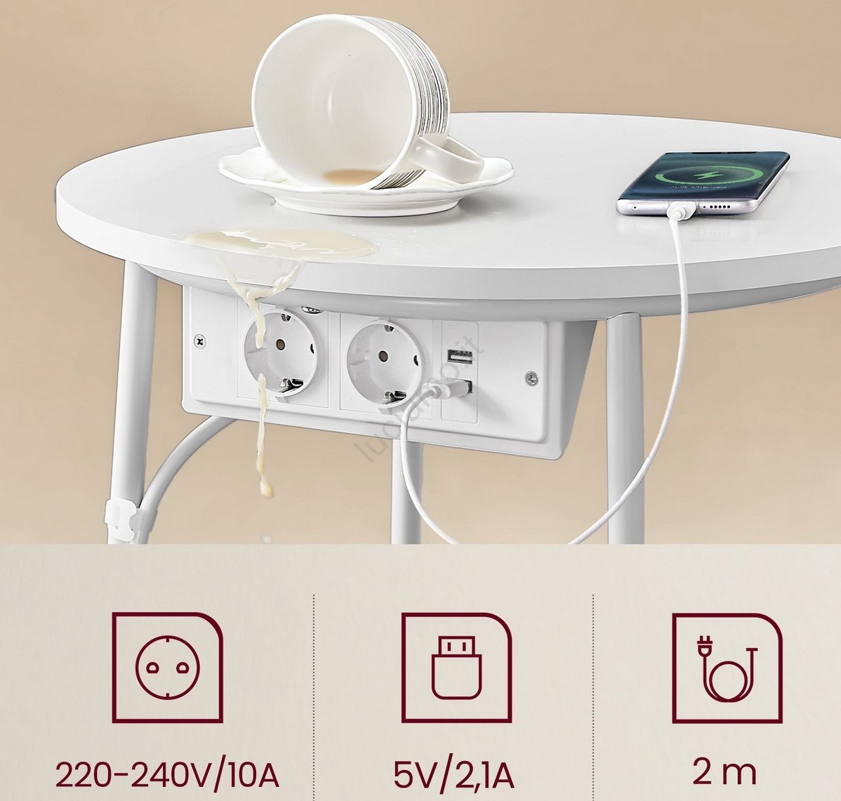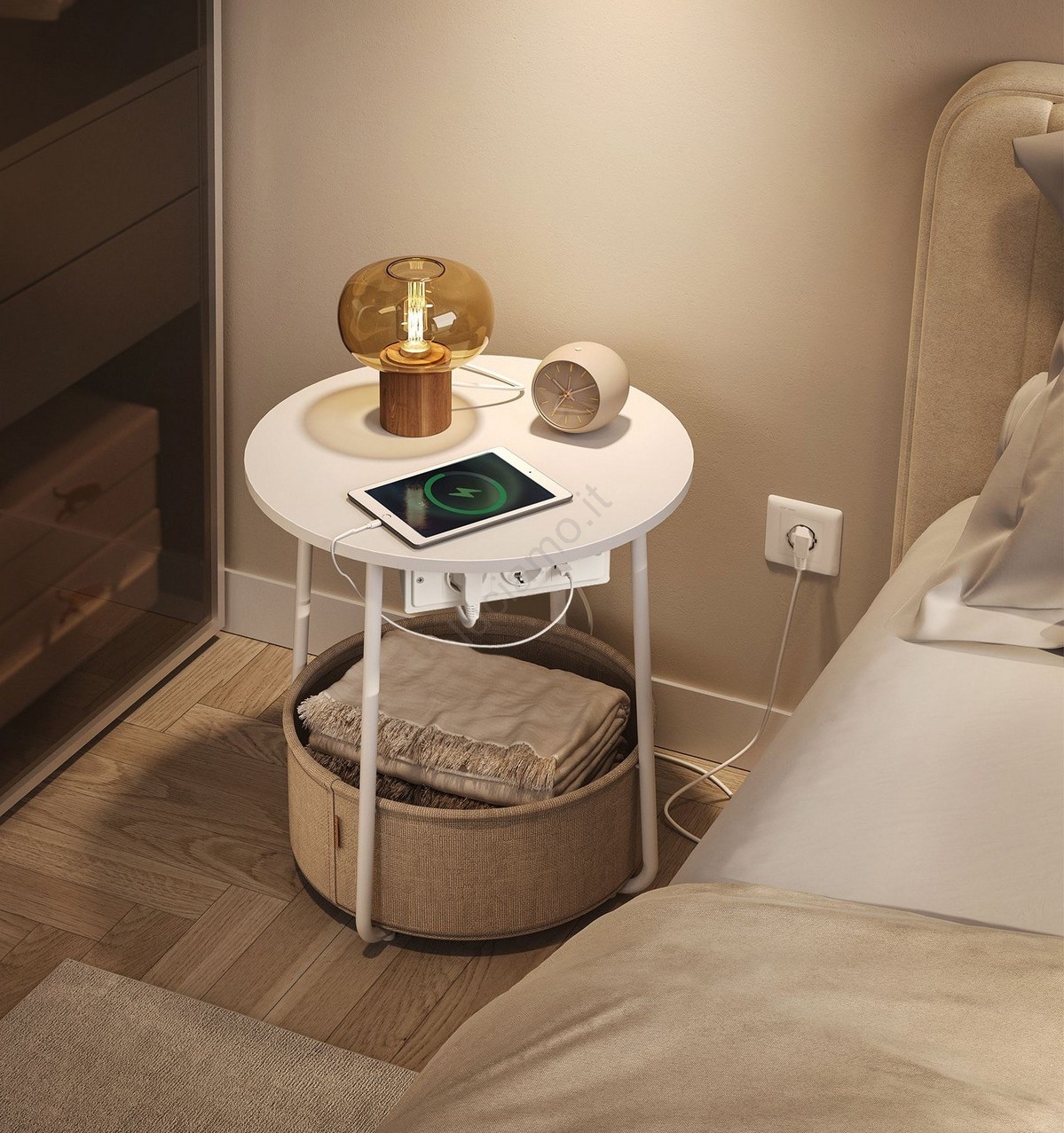 • Tavolino con prese elettriche integrate e porte USB NOIRA beige/bianco