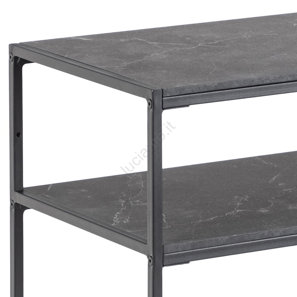• Piano e 2 ripiani in melaminico grezzo nero opaco Izmir, base in acciaio grezzo nero opaco con rivestimento a polvere.